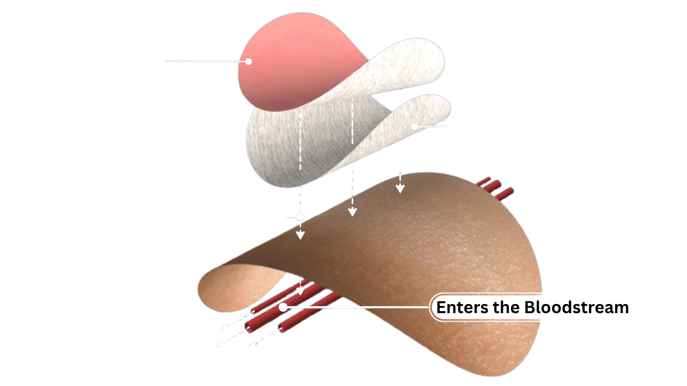 4. Uptake: Molecules pass into the epidermis/dermis and enter nearby capillaries, bypassing digestion and first-pass metabolism.