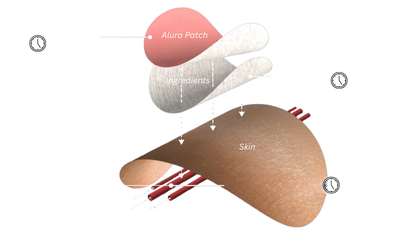 Alura patches deliver active ingredients directly through your skin using advanced transdermal technology — bypassing digestion for faster, more efficient absorption. This ensures steady, all-day support without the digestive upset that pills can cause.